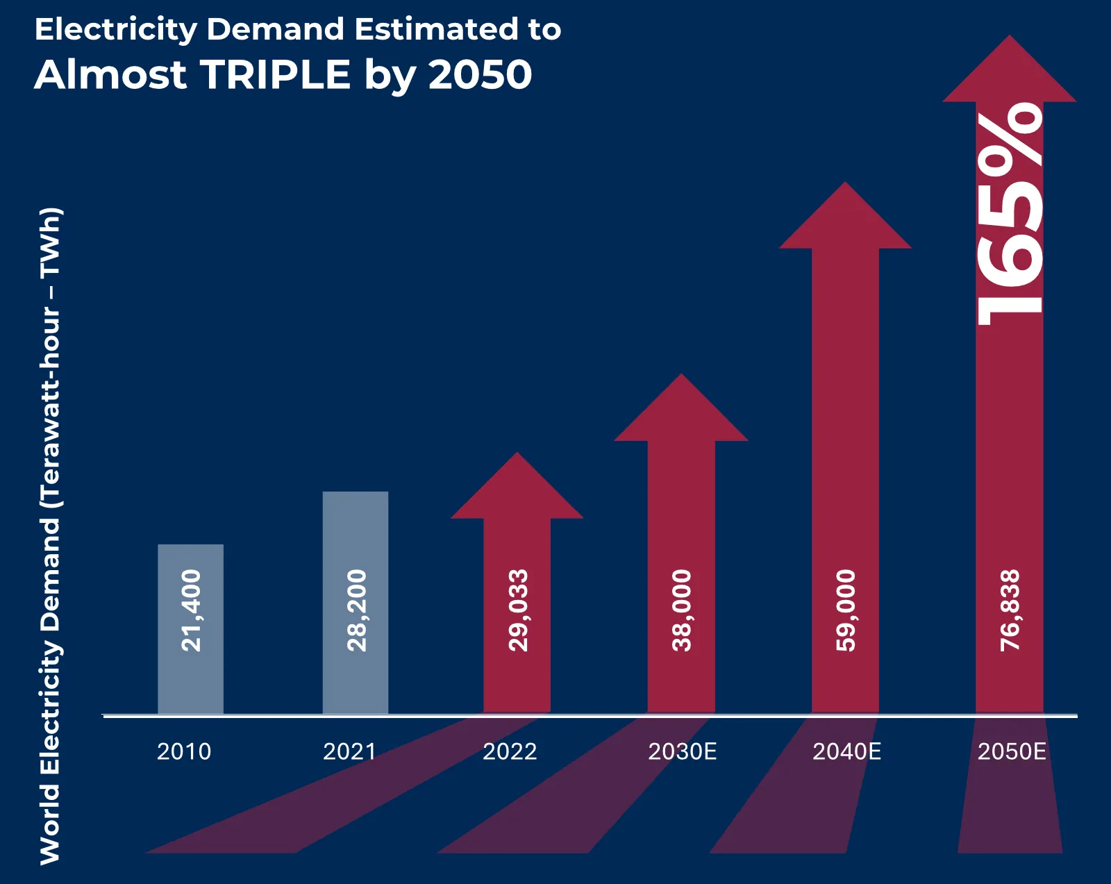 Electricity’s share of total energy consumption is projected to increase from 20% today to approximately 50% by 2050